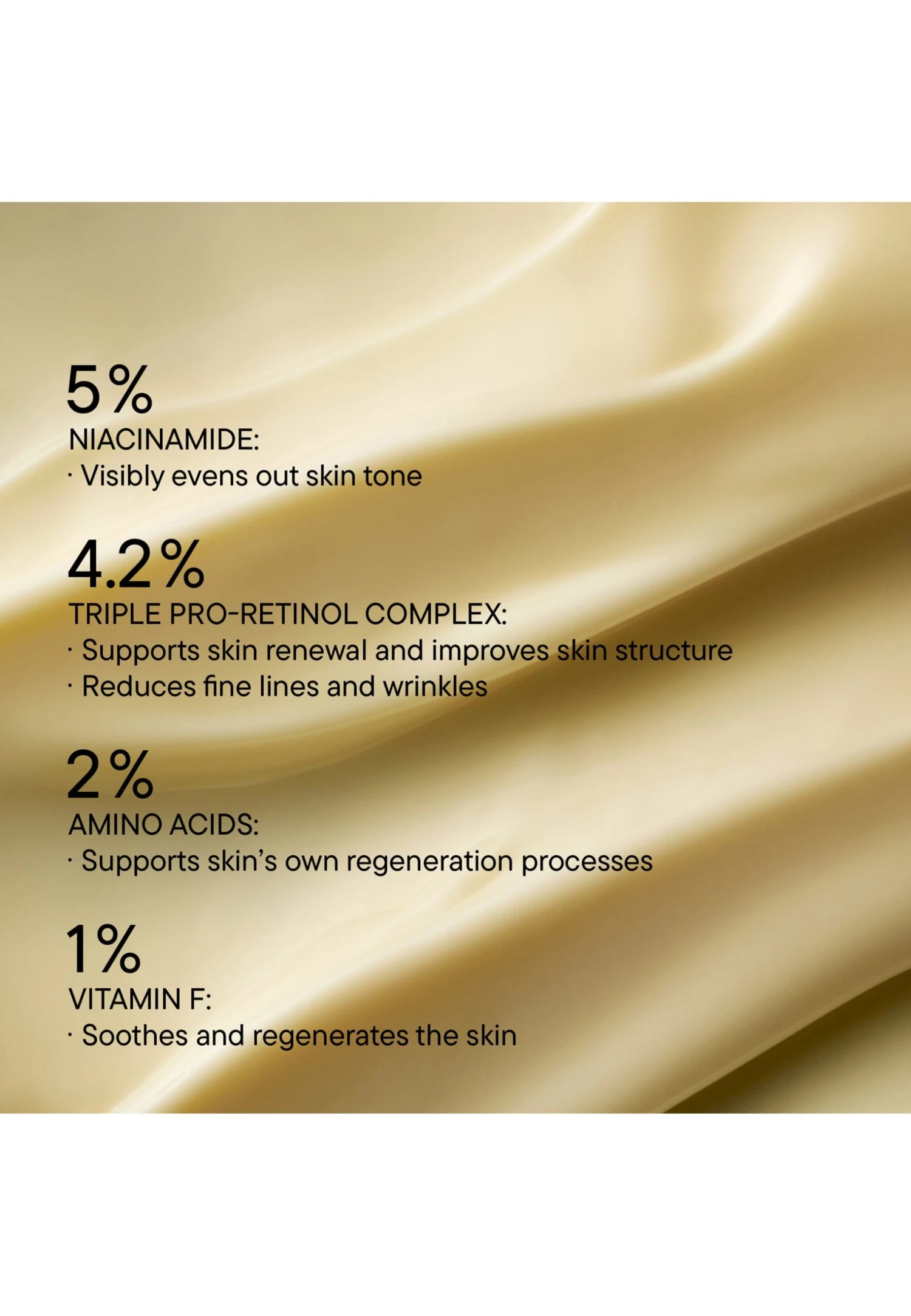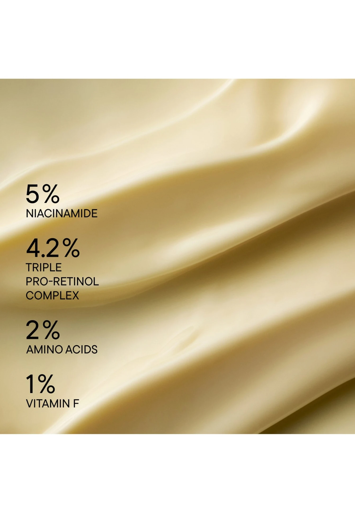 - Inhaltsstoffe: AQUA/WATER/EAU, NIACINAMIDE, GLYCERIN, MACADAMIA INTEGRIFOLIA SEED OIL, SESAMUM INDICUM (SESAME) SEED OIL, CETYL ALCOHOL, HYDROGENATED VEGETABLE GLYCERIDES, PRUNUS AMYGDALUS DULCIS (SWEET ALMOND) OIL, HYDROGENATED ETHYLHEXYL OLIVATE, POTASSIUM CETYL PHOSPHATE, HIPPOPHAE RHAMNOIDES FRUIT EXTRACT, ROSMARINUS OFFICINALIS (ROSEMARY) LEAF EXTRACT, AGRIMONIA EUPATORIA EXTRACT, FUCUS VESICULOSUS EXTRACT, FUMARIA OFFICINALIS EXTRACT, NASTURTIUM OFFICINALE EXTRACT, PANAX GINSENG ROOT EXTRACT, SCROPHULARIA NODOSA EXTRACT, URTICA DIOICA (NETTLE) LEAF EXTRACT, BRASSICA CAMPESTRIS (RAPESEED) STEROLS, BAKUCHIOL, PANTHENOL, BETAINE, RETINYL PALMITATE, SODIUM PCA, TOCOPHEROL, SODIUM LACTATE, RETINOL, PCA, SERINE, ALANINE, GLYCINE, GLUTAMIC ACID, SORBITOL, LYSINE HCL, THREONINE, CAPRYLYL GLYCOL, ARGININE, PROLINE, GLYCINE SOJA (SOYBEAN) OIL, HYDROGENATED PALM GLYCERIDES, PARFUM/FRAGRANCE, GLYCERYL LINOLEATE, GLYCERYL OLEATE, HYDROGENATED OLIVE OIL UNSAPONIFIABLES, XANTHAN GUM, PROPANEDIOL, GLYCERYL PALMITATE, HELIANTHUS ANNUUS (SUNFLOWER) SEED OIL, CETYL PALMITATE, GLYCERYL LINOLENATE, LAURYL GLUCOSIDE, GLYCERYL STEARATE, ALCOHOL DENAT., SORBITAN STEARATE, ETHYLHEXYLGLYCERIN, HYDROGENATED LECITHIN, PANTOLACTONE, CITRIC ACID, PHENOXYETHANOL, BENZYL ALCOHOL